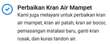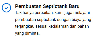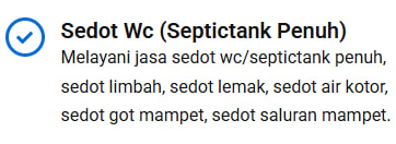 Jenis Layanan: (misalnya, sedot WC, pelancaran saluran, atau pembuatan septic tank).